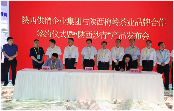 展会期间,陕西省供销合作总社主任杨效宏等领导莅临展会现场参观指导,市社主任陈小康陪同参观,并向省社领导介绍我社参展商品。随后,杨效宏、陈小康等领导共同参加了陕西供销企业集团与陕西梅岭茶业品牌合作签约仪式暨“陕西炒青”产品发布会。